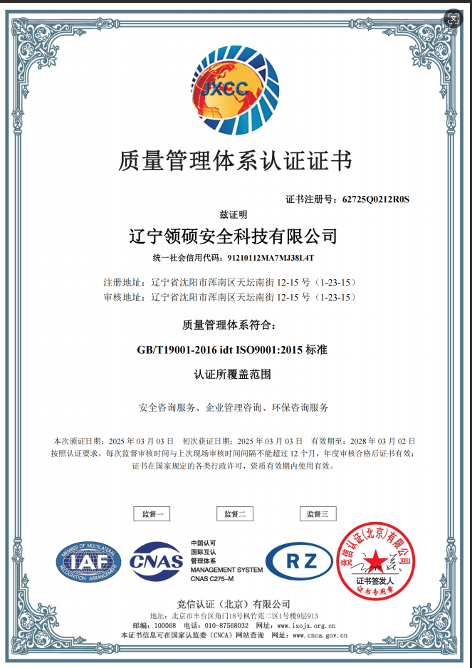 遼寧領(lǐng)碩安全科技有限公司位于遼寧省沈陽市渾南區(qū)天壇南街12-15號,注冊資金300萬。主要經(jīng)營范圍為遼寧省范圍內(nèi)的安全環(huán)保咨詢,生產(chǎn)安全事故應(yīng)急預(yù)案技術(shù)服務(wù)、企業(yè)雙重預(yù)防機制建立、履職能力評估、企業(yè)科研項目安全部分服務(wù)等的技術(shù)服務(wù)機構(gòu)。現(xiàn)有員工12人,其中包括5名遼寧省級安全生產(chǎn)專家。成立于2022年4月18日,在盤錦市成立至今已經(jīng)為30余家企業(yè)提供了安全環(huán)保技術(shù)咨詢。 業(yè)務(wù)范圍包括:技術(shù)服務(wù)、技術(shù)開發(fā)、技術(shù)咨詢、技術(shù)交流、技術(shù)轉(zhuǎn)讓、技術(shù)推廣,安全咨詢服務(wù),環(huán)保咨詢服務(wù),標(biāo)準(zhǔn)化服務(wù),企業(yè)管理咨詢,科技中介服務(wù),工程管理服務(wù),特種作業(yè)...查看更多